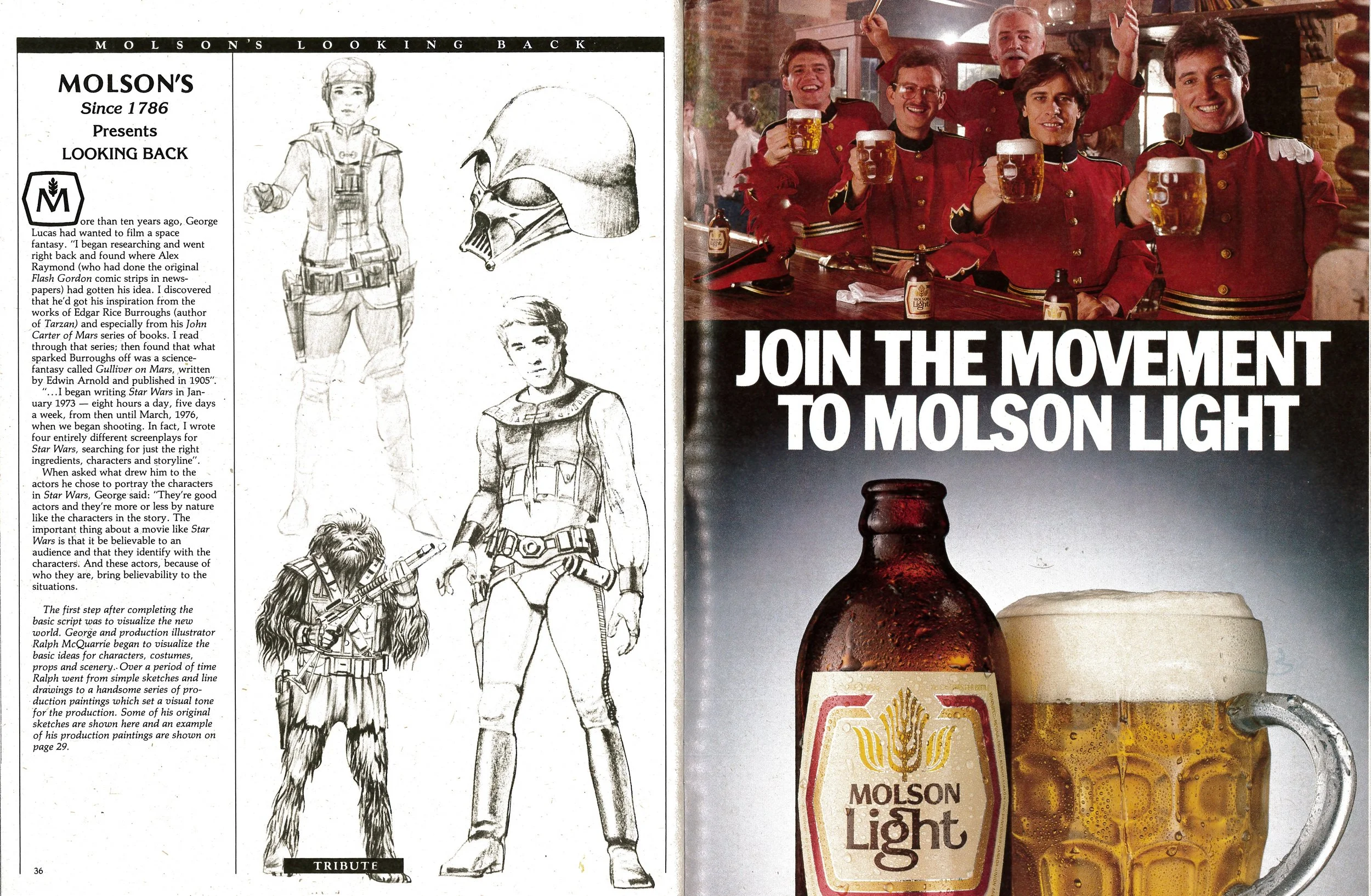 Certain ads tie in to sponsored features in a magazine, such as Molson's "Looking Back" section in the Fall 1982 Star Wars-centric issue. Join the Movement to Molsons Light! Everyone's on board.